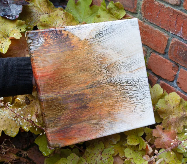 Acrylic on canvas with resin finish. Stretched canvas 25cm square, 3.5cm depth.